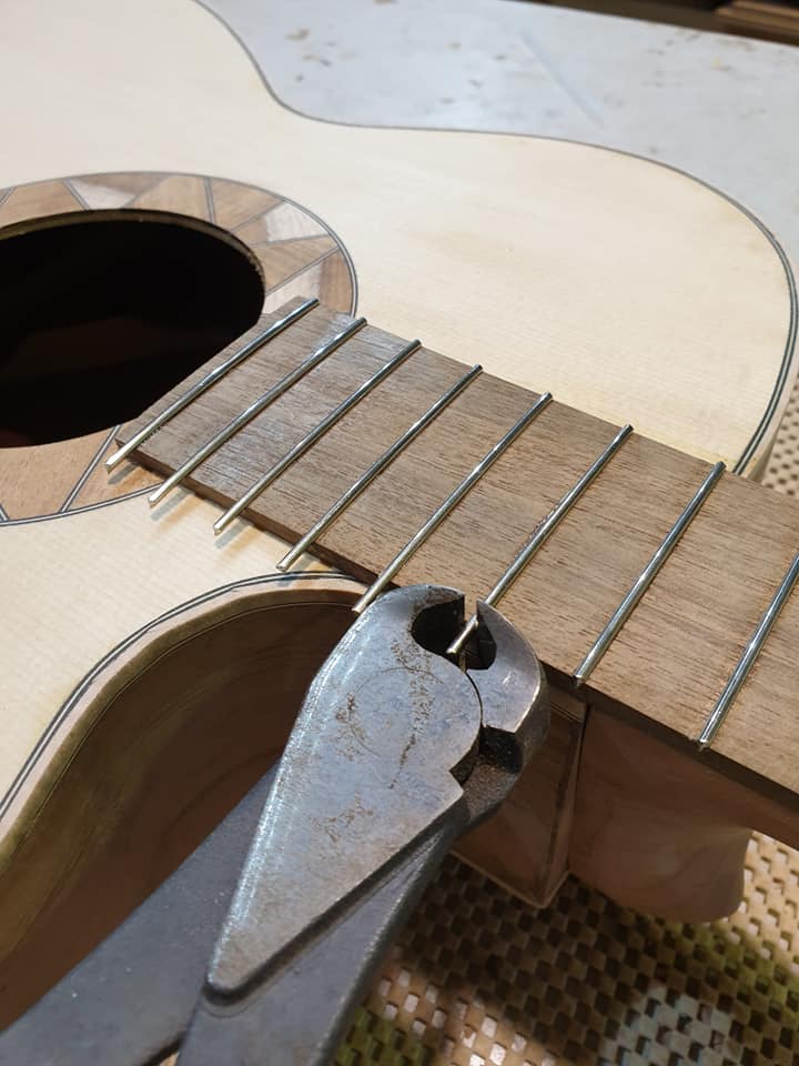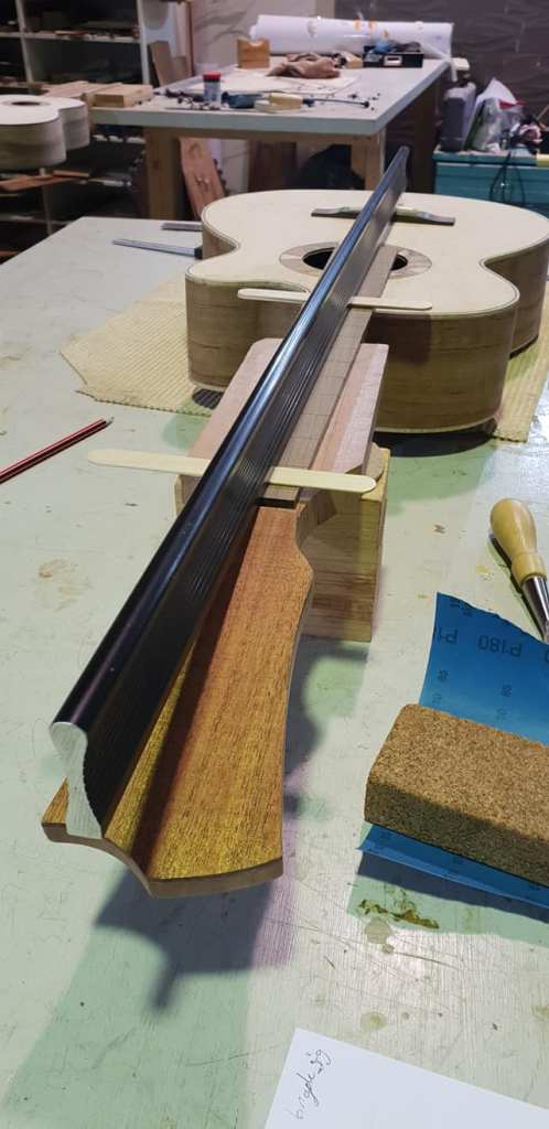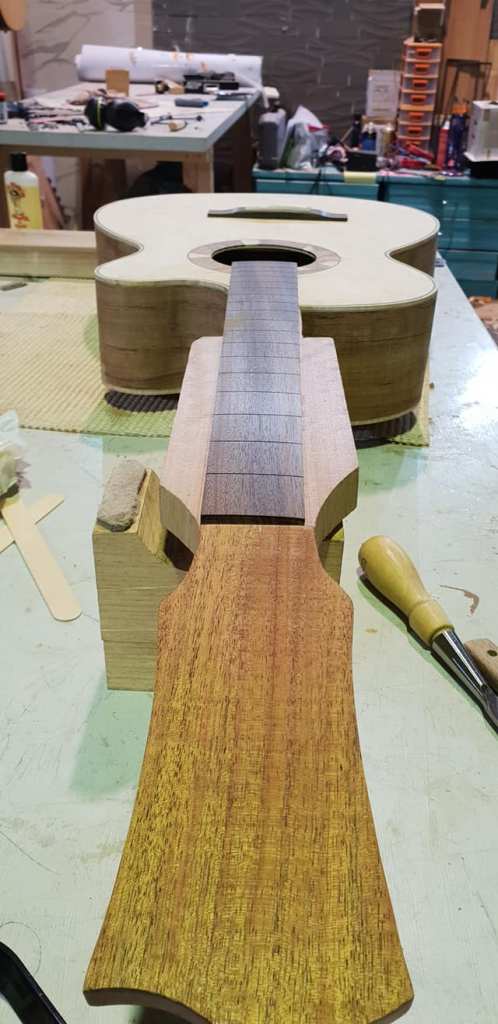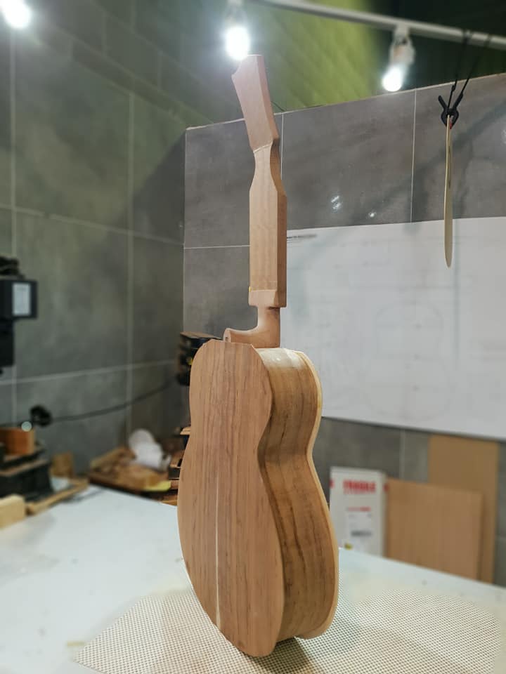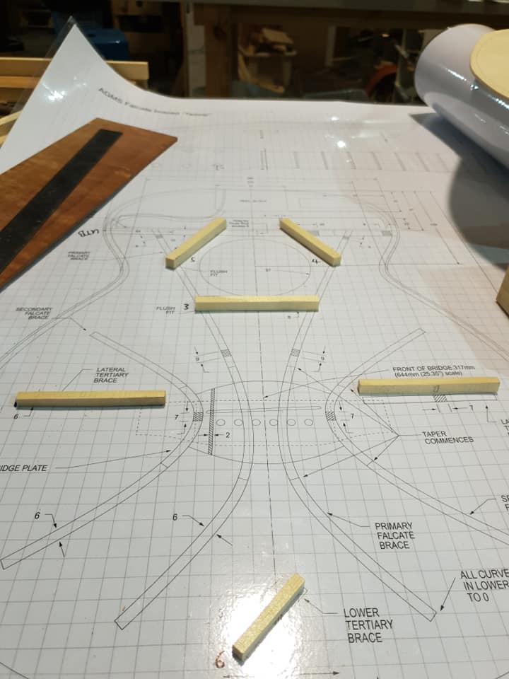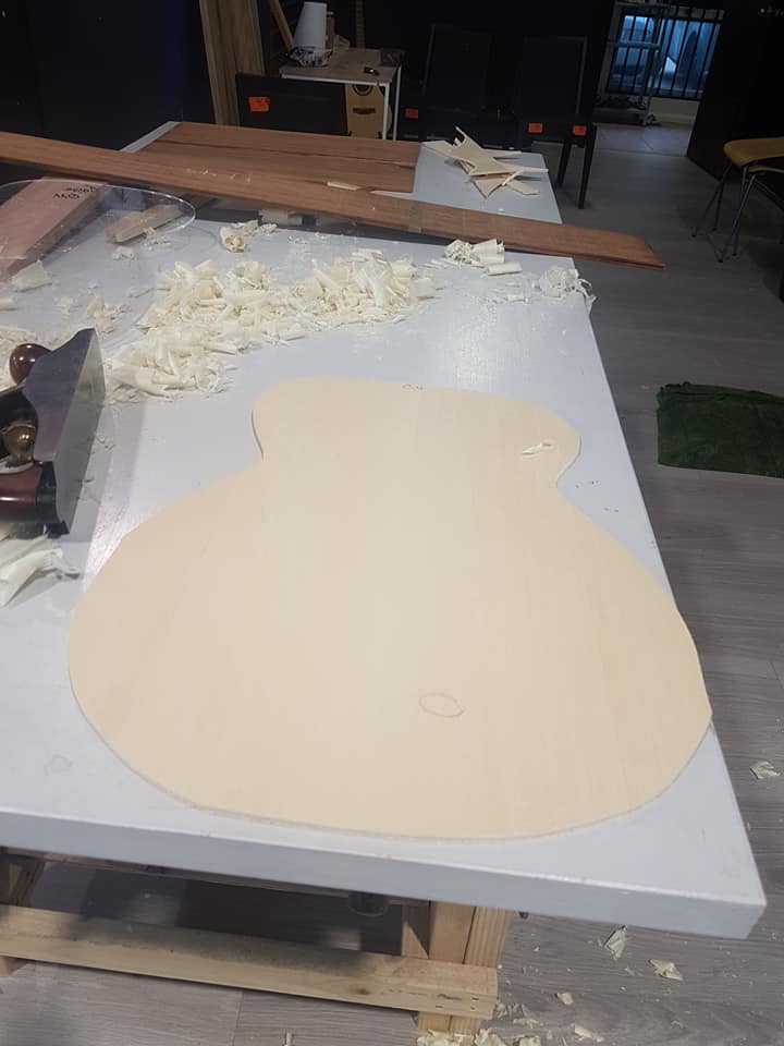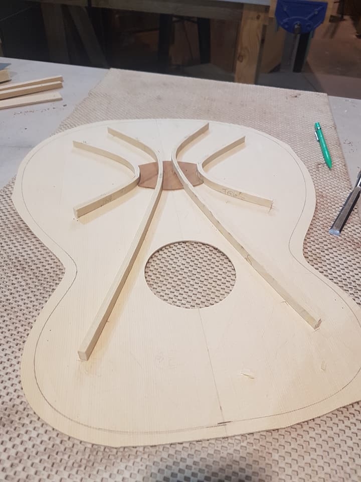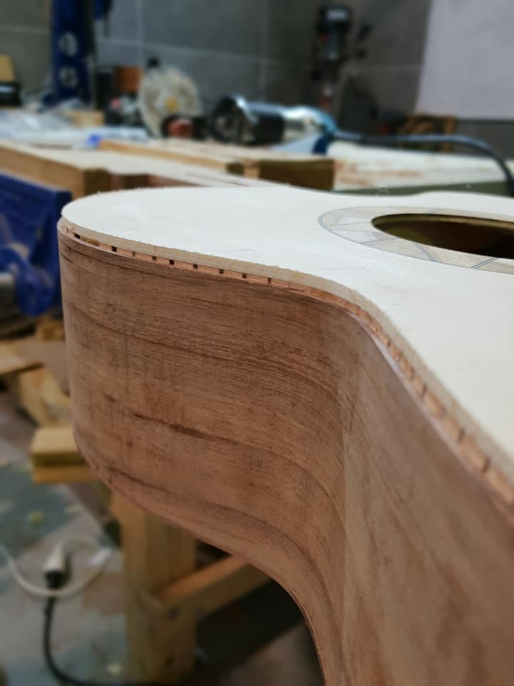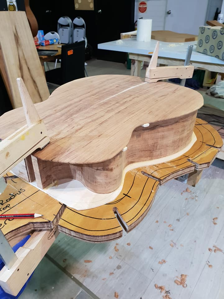 This is an OM (Orchestral Model) with Toscano Bracing and design. Queensland Walnut fignerboard and Tasmanian Blackwood with Engleman Spruce sound board.