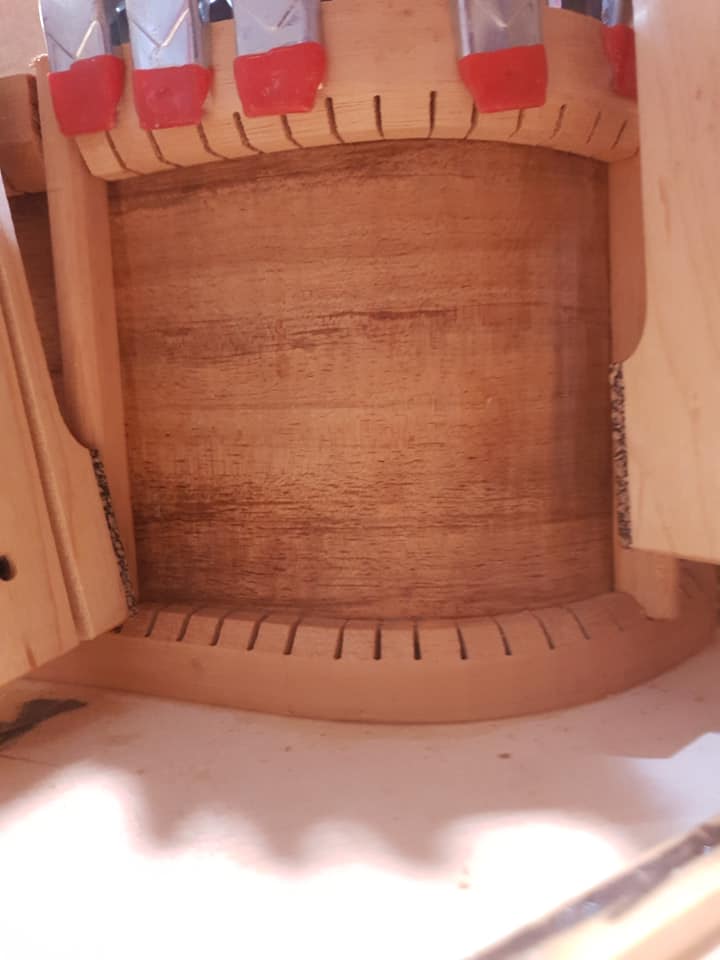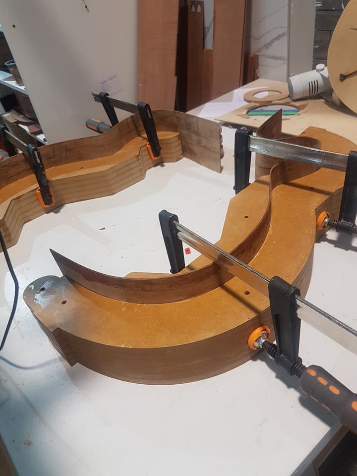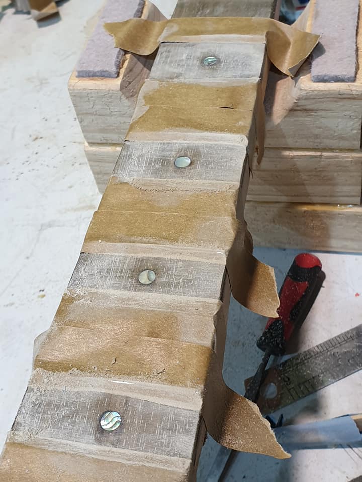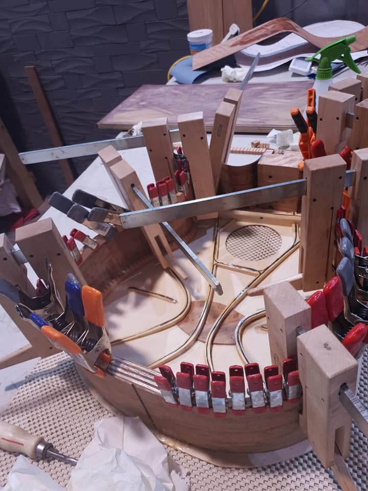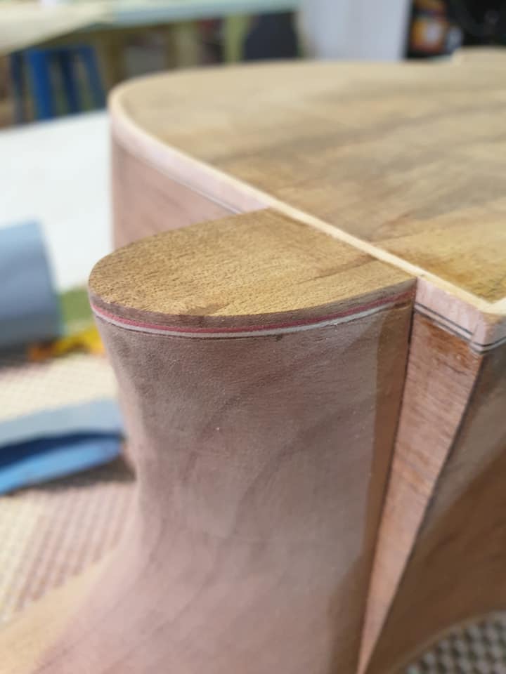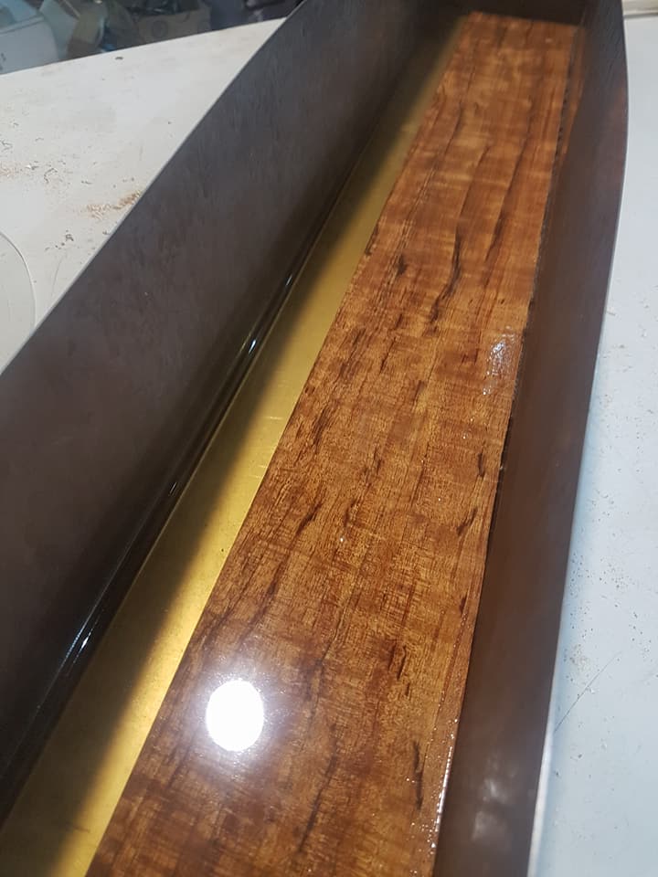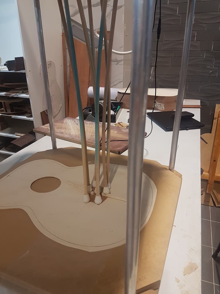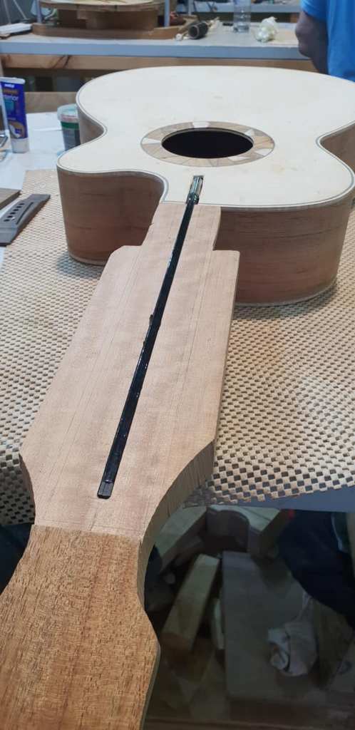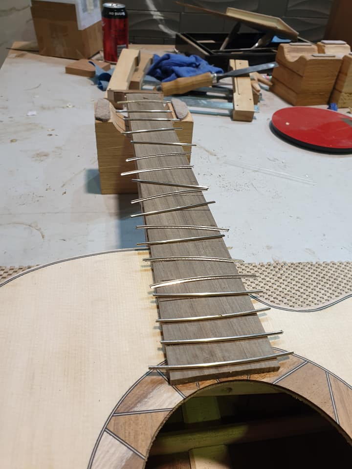 This is an OM (Orchestral Model) with Toscano Bracing and design. Queensland Walnut fignerboard and Tasmanian Blackwood with Engleman Spruce sound board.