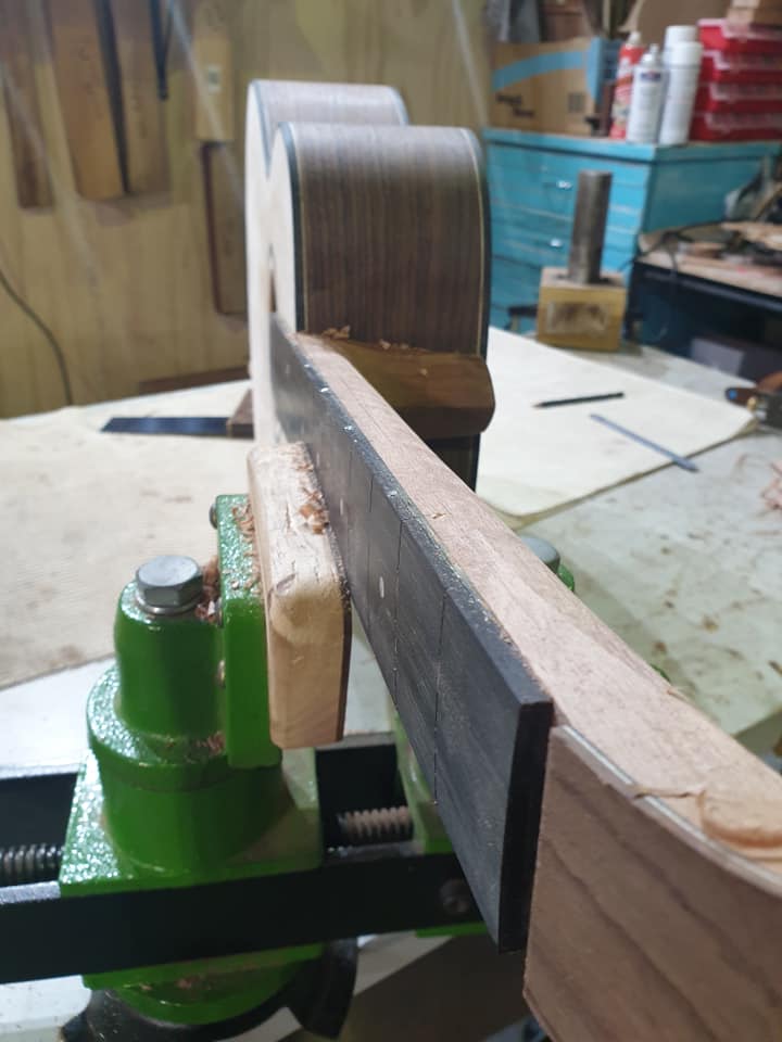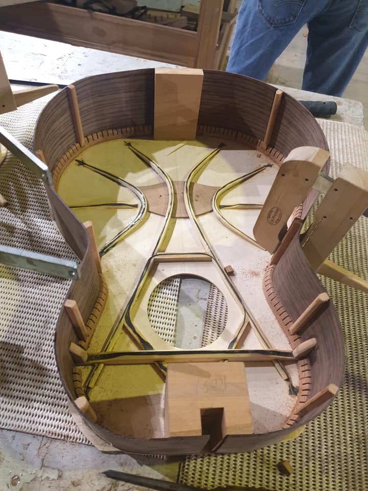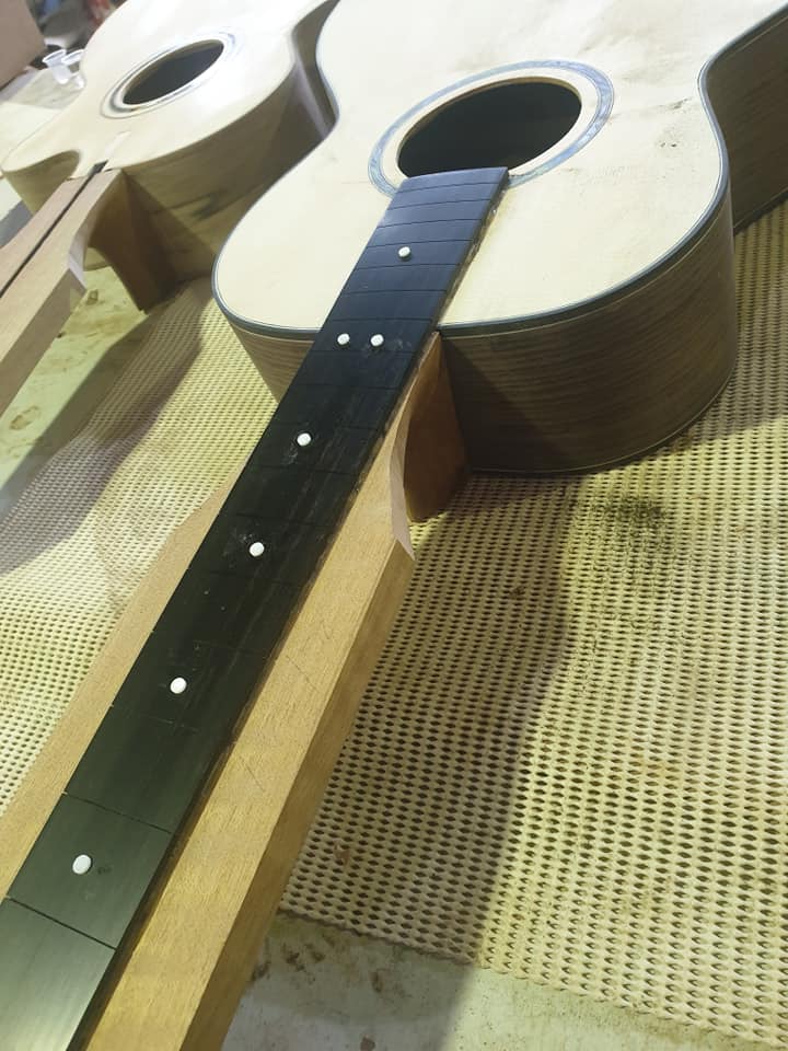 This amazing guitar is a OO model which makes it compact in size. It has tonewoos of Indian Rosewood and a Spruce top and maple neck. The Rosette is an toscano special.